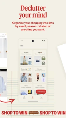 Organize your shopping into lists by event, color, season, room, retailer, or anything you want. Shopping ninjas know: a tidy space is a tidy mind.