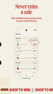 3. Get the best price. Be first in line to get price drop alerts on your saved items when they go on sale.